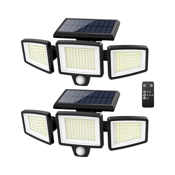 2500LM 210 LED controle remoto IP65 impermeável Sensor de movimento de 3 cabeças 270 ° grande angular ao ar livre Solar LED luzes de segurança