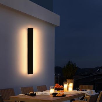 Modern açık LED duvar aplik 31.4 inç sıcak beyaz 3000K IP65 su geçirmez siyah doğrusal uzun veranda için şerit aydınlatma fikstür